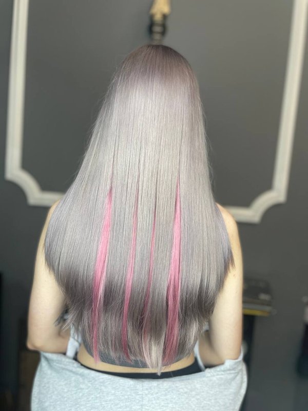 Красилась из темно-руссого в серый, покрасили супер классно, очень боялась, что буду уходить в теплые оттенки (еб##ный рыжий пигмент, который везде и всегда вылазит), но Катя все сделала отлично, ничего похожего на теплый оттенок не было, а волосы чувствовали себя прекрасно после окрашивания, спасибо Кате!