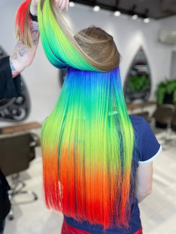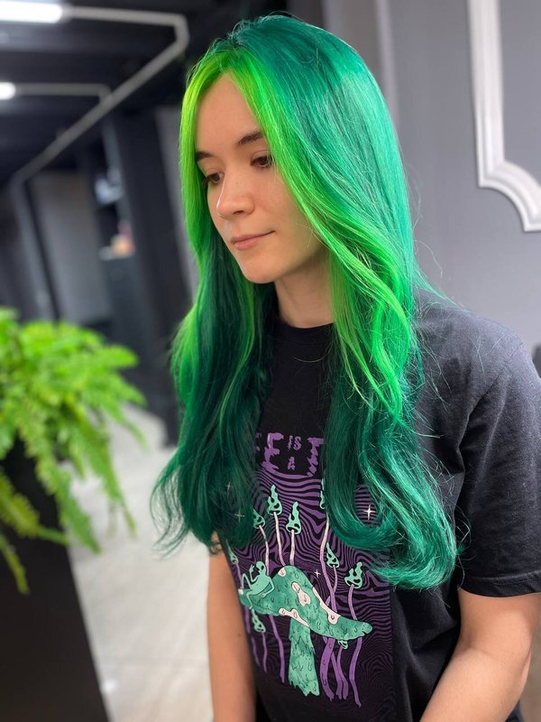 Мне всё понравилось. Довольно уютная и небольшая студия. Юная леди, что со мной работала, была общительной, милой и талантливой. Прислушалась к моим пожеланиям и мелким вопросам. Многое обсудили и прошлись даже вместе до метро.) Градиент зелёного на мне сиотрелся великолепно. Чувствую себя аниме девочкой в реале.) Очень заботливо и бережно отнеслись к волосам. А процесс окрашивания и осветления очень детальный. Было интересно наблюдать, запомнила технику. Советы по уходу на уровне, хотя и стоит сказать, что давно знакома с данными процедурами. Приятная рок музыка.) Буду возвращаться к розовласому ангелу. Спасибо тебе большое, я довольна результатом и обязательно вернусь к тебе ещё.)